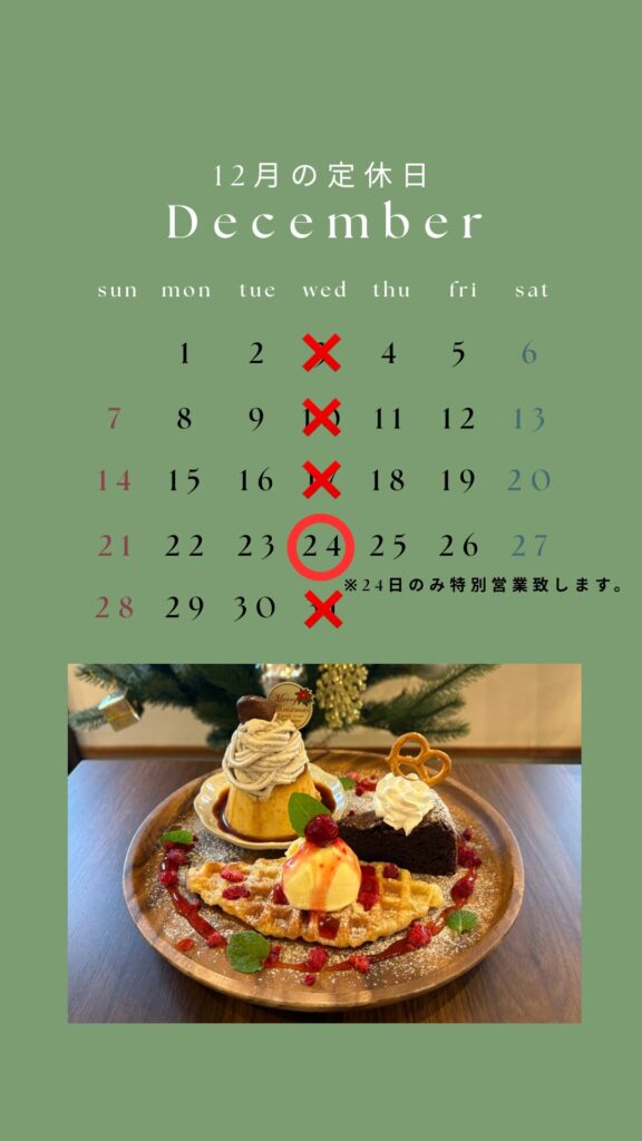 2025年12月 定休日のお知らせ 2025 11/30 定休日 2025年11月30日 いつもSOLA CAFEにご来店いただきありがとうございます。2025年12月の定休日をお知らせします。毎週水曜日が定休日となりますが、12月24日のみ特別営業致します。今月もたくさんのお客様のご来店心よりお待ちしております。 NEWS TOPに戻る 定休日 よかったらシェアしてね! URLをコピーする URLをコピーしました! URLをコピーしました!
